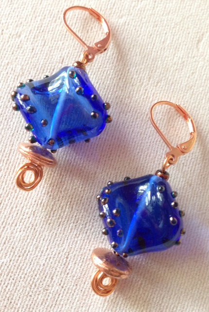 Blue swirl Czech glass earrings, copper beads, copper leverbacks. $41 includes FREE shipping within mainland U.S.A.